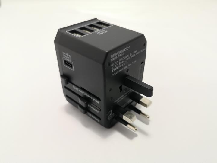 つまりこの1台で、4種類の変換プラグ、電圧を変える変圧器、充電できるACアダプタを兼ね備えているというわけ。これは便利です。