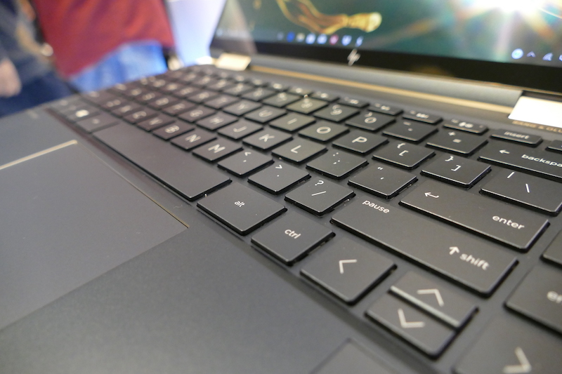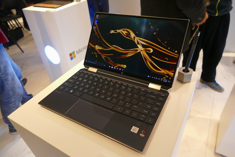 ▲HP Spectre x360 13。従来の光沢のあるディスプレイではなく、アンチリフレクションガラスを採用し、場所を問わずに視認性を確保する。非光沢(アンチグレイ)ではないので、粗さが目立たないのが特徴だ