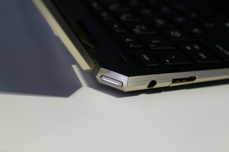 ▲左コーナーには電源ボタンを配置。CNC削り出しのアルミニウムを使い、エッジ部分を面取りした「エメラルド・カットデザイン」を採用。本体重量は約1.24kg
