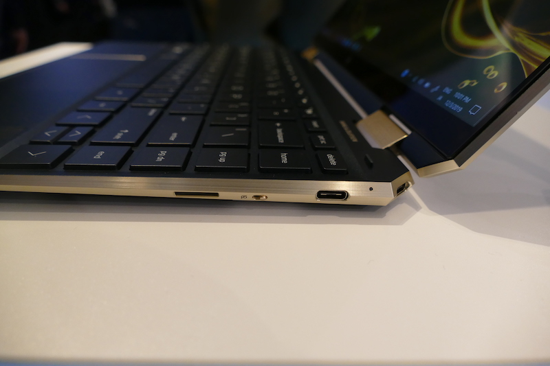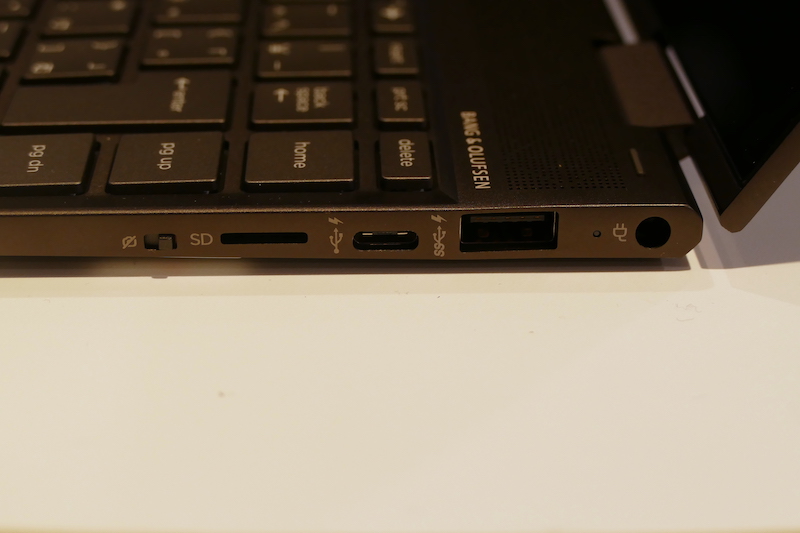 ▲側面のほか、右コーナーにもUSB-Cポート。側面には万が一のカメラハッキングや、ビデオ通話会議を防ぐ、プライバシーカメラキルスイッチを搭載