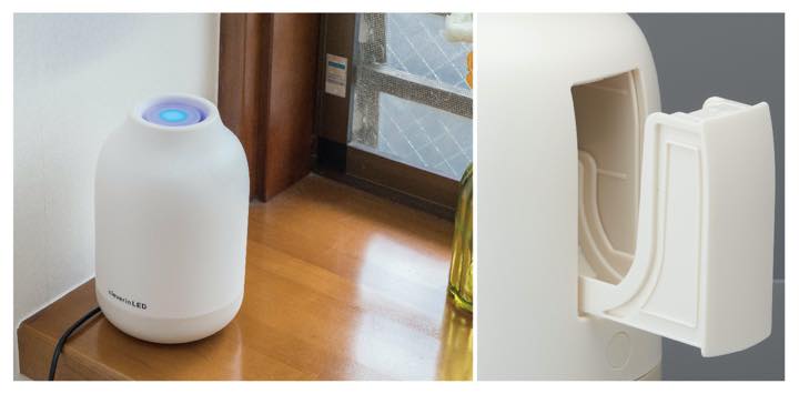 ポットタイプの「CLGU-061」とスクエア型の 「CLGU-062」の2タイプで、卓上やベッドサイドに置きやすいコンパクトサイズ。清潔感のあるシンプルなデザインもいい感じです。