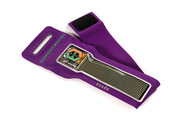 「FLEX SIGN anode エヴァンゲリオン仕様」(1万1000円/税別)は、文字を明るく表示するLEDディスプレイを腕や帽子などに装着できるウエアラブルディスプレイ「anodeアームバンド」に、エヴァンゲリオン初号機のロゴとイメージカラーである “EVANGELIONー01” の文字をプリントしたスペシャル仕様のアイテムです。