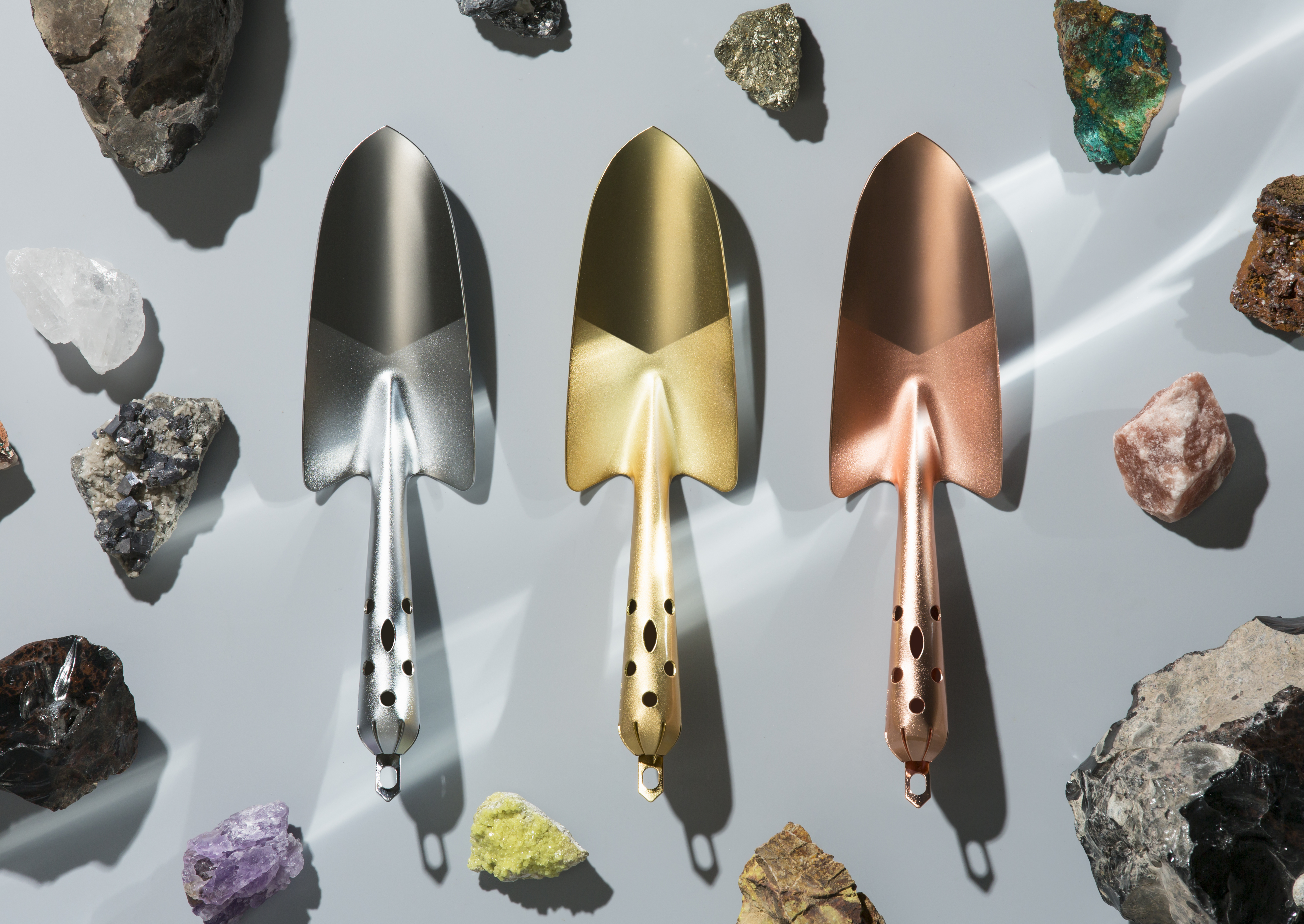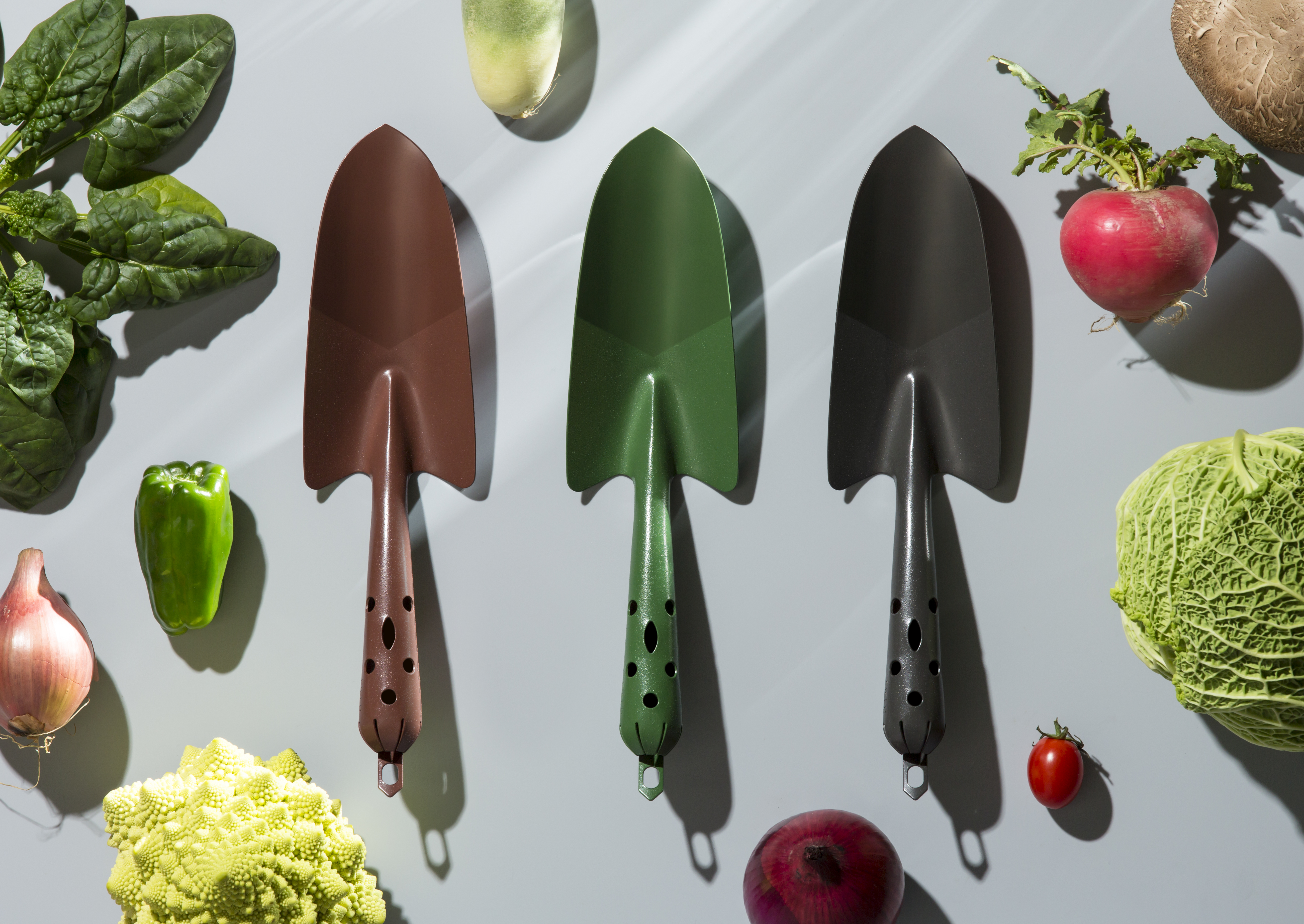 2月3日から5日に開催された、ビックサイトのギフトショーACTIVE CREATORSに展示発表し好評を得た3種類のスコップは、ショップのバイイングやディレクションなどを行うmethod(メソッド)プロデュース、クリエイティブ・ユニット「SPRED」のアートディレクションで、ハイセンスかつ大地の恵みを感じさせるデザインに仕上がっています。