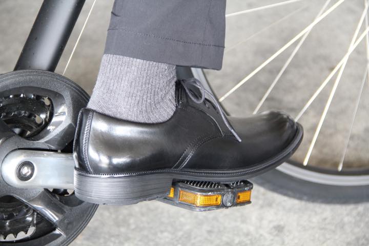 通勤に自転車を使うビジネスマンに朗報。ペダルグリップを強化した画期的な革靴が登場です! 「こういうの、待っていたんだ…」という人は、きっと多いはず。スーツにマストな革靴は、底がツルっとしているものが多いので、そのまま自転車に乗ると、確かに滑りやすい…。忙しい朝、人知れずカッコ悪い思いをしていたアナタ。これを履けばもう安心ですよ。