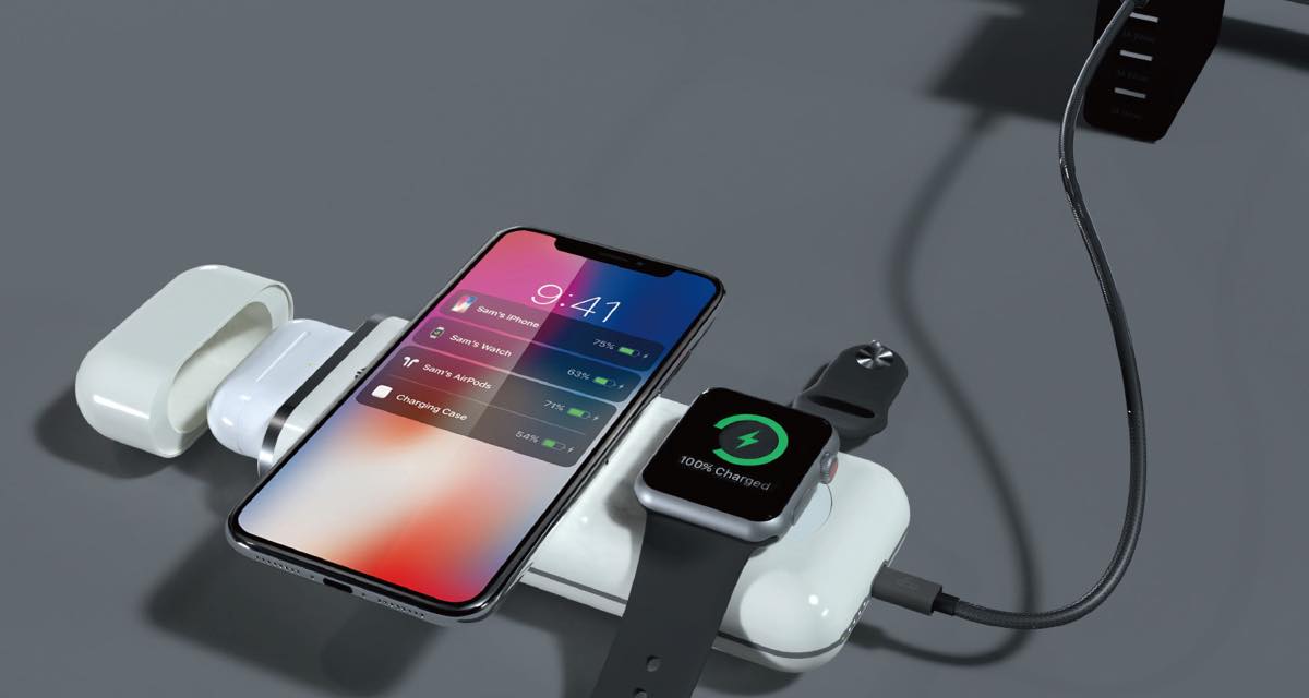 iPhoneやApple Watchを置くだけで簡単にワイヤレス急速充電できるほか、AirPodsを収納しながら充電できるスペースを搭載しています。また有線充電が可能なUSB-C端子が付いておりiPadも充電可能、最大4台のデバイスに一括で給電できます。