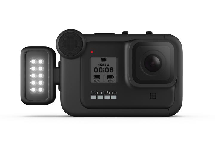 ライト モジュラーをHERO8 Blackに装着する場合には、HERO8 Black全体を包むように装着する「メディア モジュラー」を使用する必要があります。