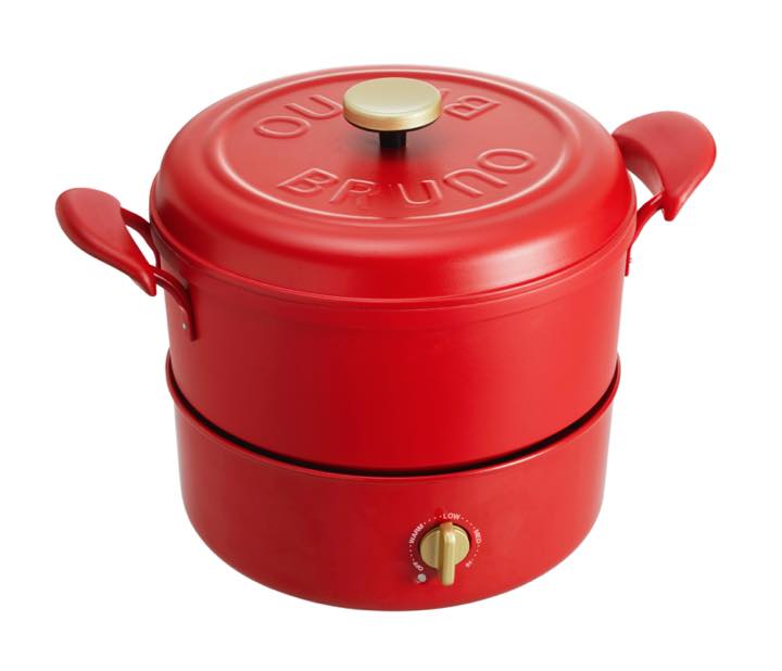 BRUNOといえば、人気の「コンパクトホットプレート」や「トースター」など、おしゃれで機能的なキッチン家電で話題のブランド。1月中旬に発売となる「マルチグリルポット」は、1台5役(煮る、焼く、蒸す、揚げる、炊く)をマルチにこなす多機能鍋。これは、何かと便利そうです。