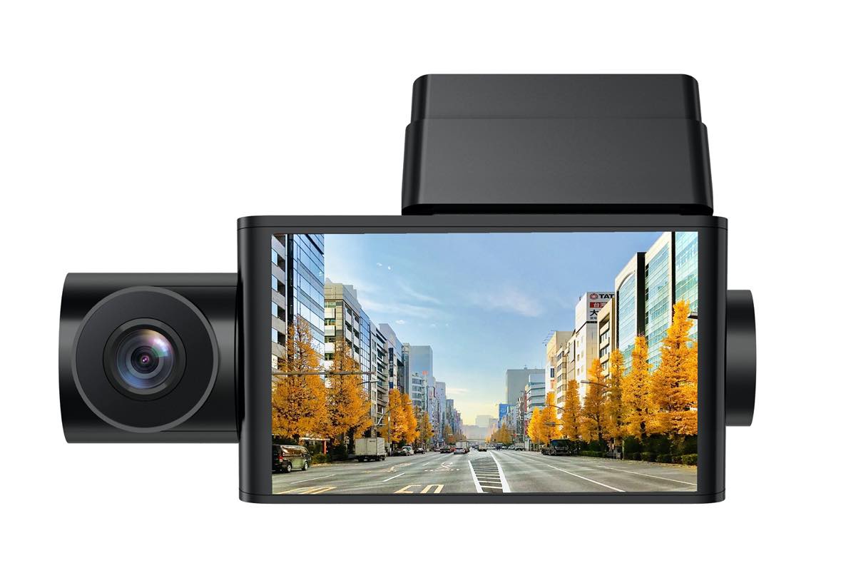 同梱するドライブレコーダーは、前方と車内の2方向の映像を同時に録画できるデュアルカメラ仕様。前方カメラは200万画素でフルHDに対応しており、視野角は対角約136度。F2.2の明るいレンズで、夜間やトンネルなどでも鮮明な映像を記録します。車内カメラは100万画素で視野角は対角約130度、こちらは赤外線LED搭載で暗い車内もしっかり撮影できるのが頼もしい。