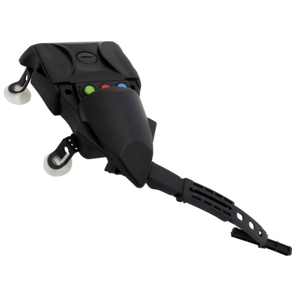 赤ボタンは電源のON/OFF、緑ボタンは4秒に1回毎にワイパーが作動するボタン、青ボタンは連続で作動するボタン。それぞれ約120度スイングし、再度ボタンを押すと停止する。