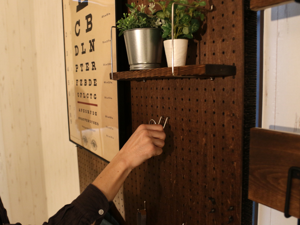 「2レッグシェルフ」「2レッグウォール」「2レッグペグウォール」のパーツは各互換性があるので、それぞれを組み合わせて自分好みの収納を作るのも実用的だし、部屋の雰囲気に合わせて素材を選んだり、塗り替えてもおしゃれです。