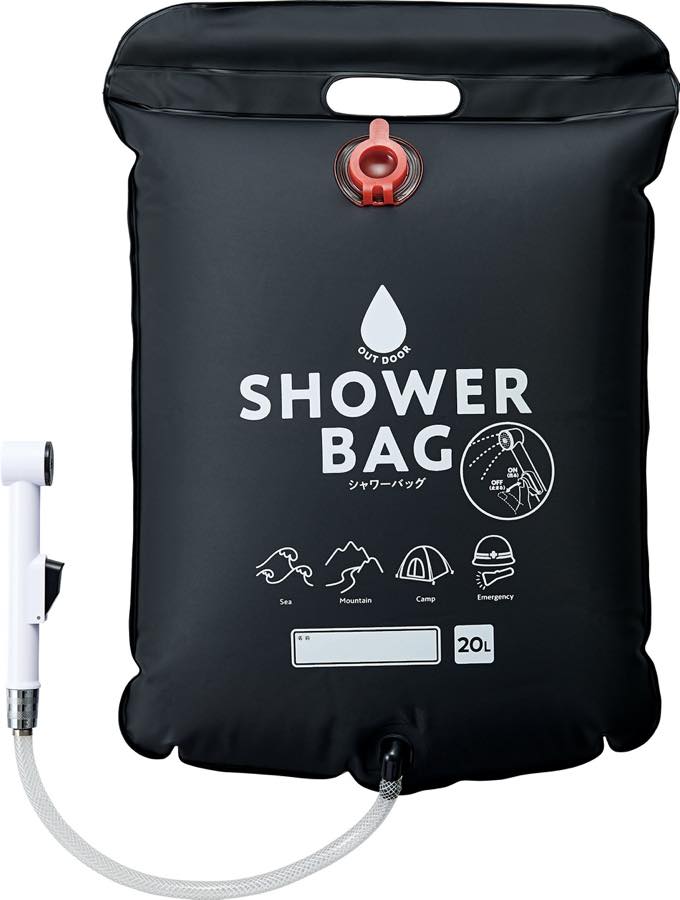 「小さく保存!ストッパー付シャワーバッグ」は、本体サイズ60×41cm、20リットルの大容量。コンパクトに折り畳んで簡単に持ち運べ、収納時も場所を取らないポータブルシャワーです。