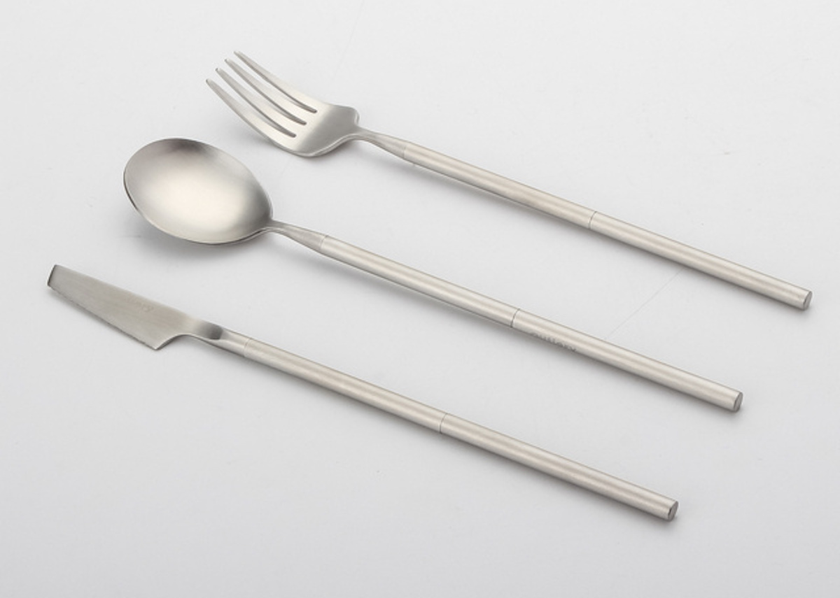 「Outlery」は、カードサイズのケースの中に三分割されたスプーン、フォーク、ナイフ、お箸を収納できるカトラリーセット。ケースは縦64mm、横80mm、高さ26mmとポケットにも難なく入るサイズで、各カトラリーはスクリュー式のパーツを組み立てることで簡単に使えます。