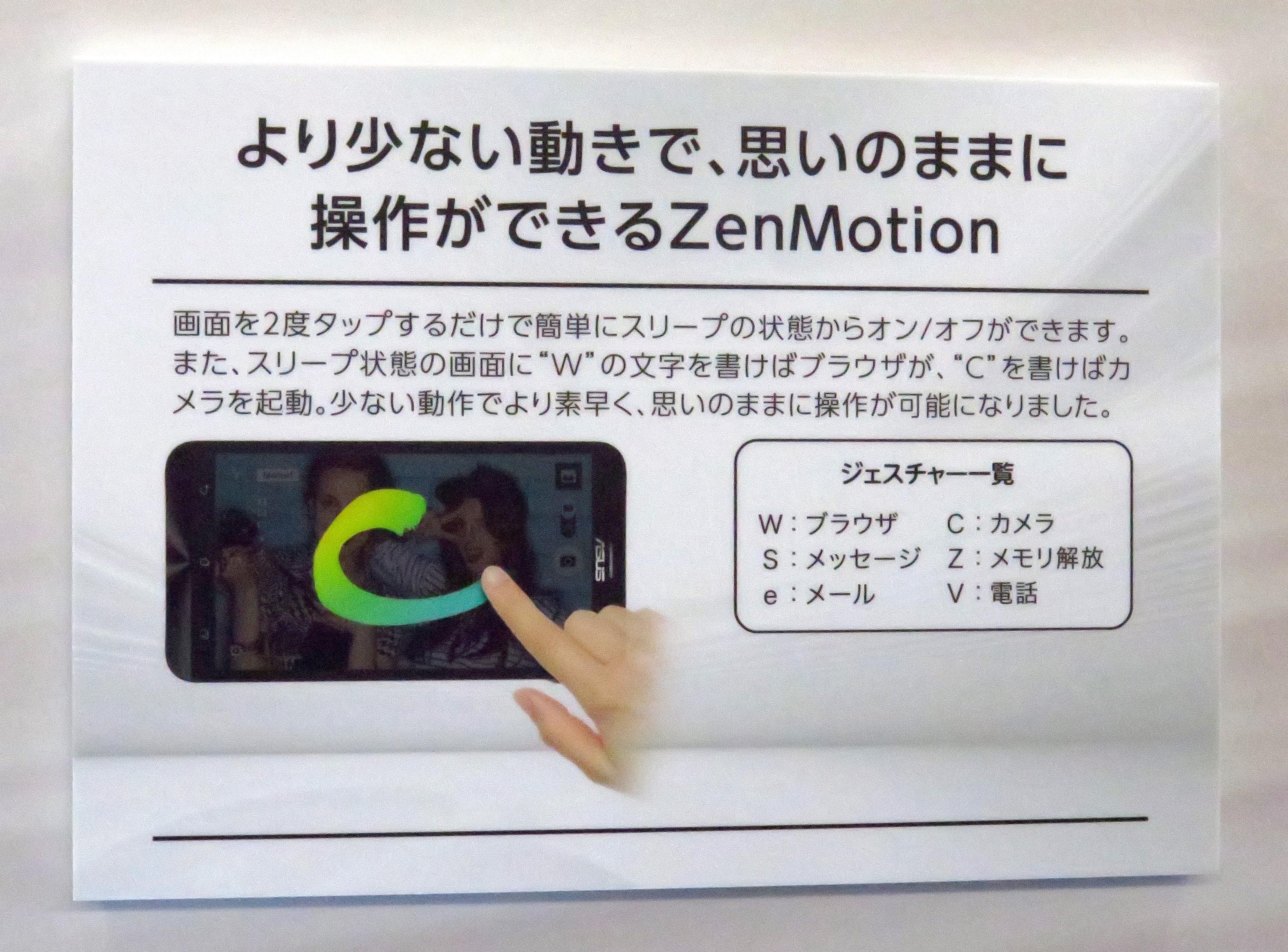 ほかに、ロック画面を「C」となぞるとカメラが起動したり、「W」でブラウザが起動するなど、ユニークなショートカット機能も備えています。6つのコマンドが初期設定されていますが、TwitterやLINEなど、自分がよく使うアプリを設定することもできるとのこと。ただし、パスコードでロックしている場合は、手書きのコマンドを入力してからロックを解除する必要があります。これは、実際に使い込んでみないと、便利なのか否かはわからずというのが率直な感想。