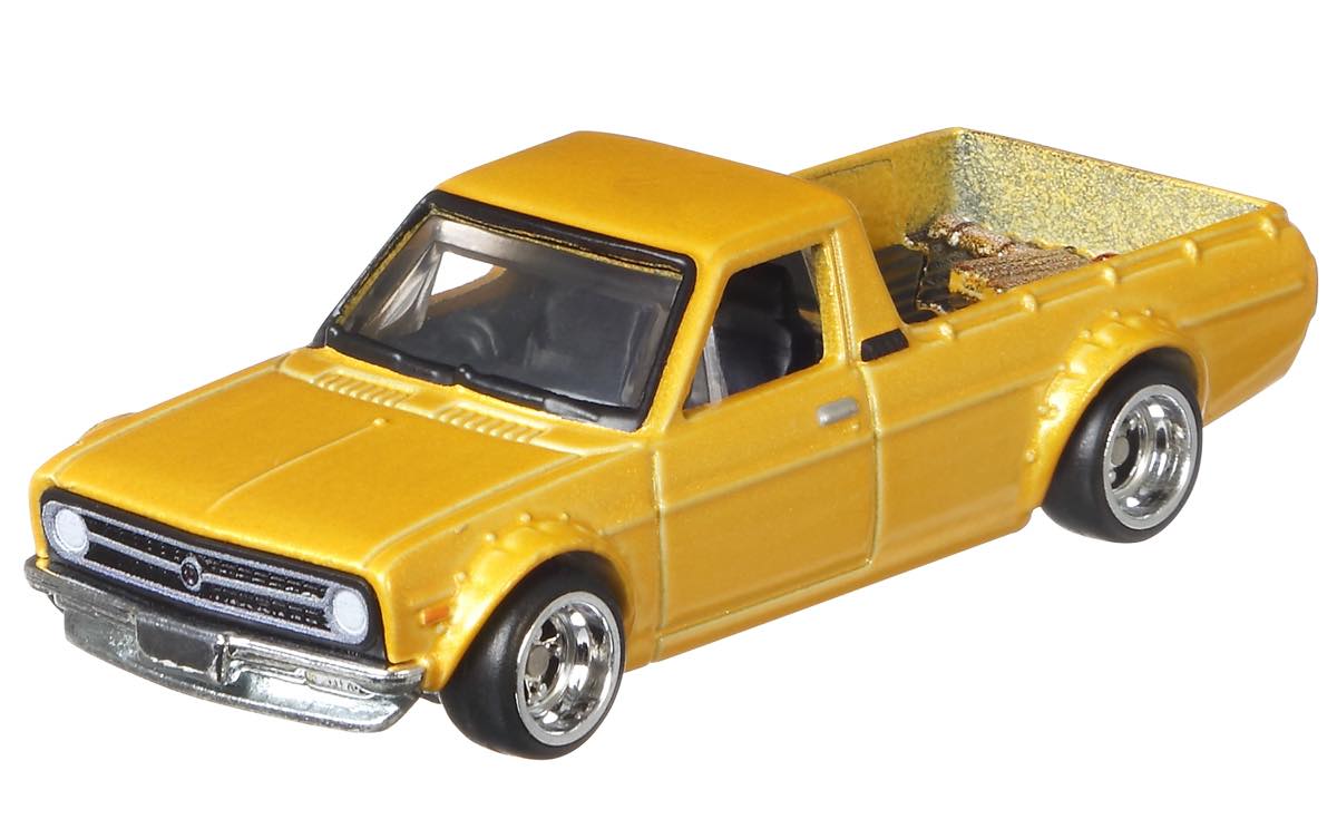 「'68 マツダ・コスモ・スポーツ」はフロントバンパーを外した、走りに特化した車体構成を再現。また「ダットサン・サニー・トラック」は、車体にオーバーフェンダー、ホイールに対して細いタイヤを履かせる“引っ張りタイヤ”を装備したカスタム仕様と、車好きも納得の造形となっています。