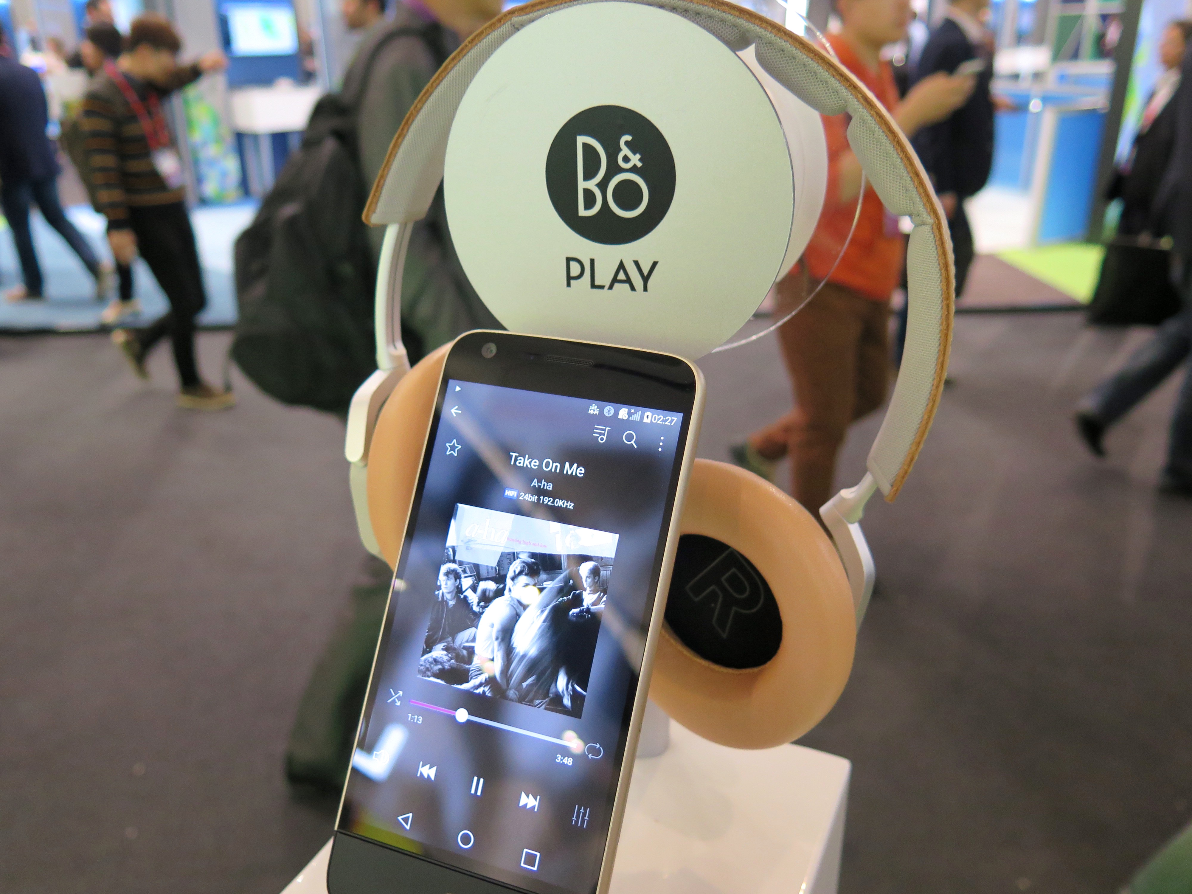 もちろん、ハイレゾ音源(384kHz/32bitまで)の再生にも対応しています。試聴用としてブースに置かれていたBang & Olufsenのヘッドホンで聴いてみましたが、スマホとは思えないほどクリアで、しかも深みのある音でした。