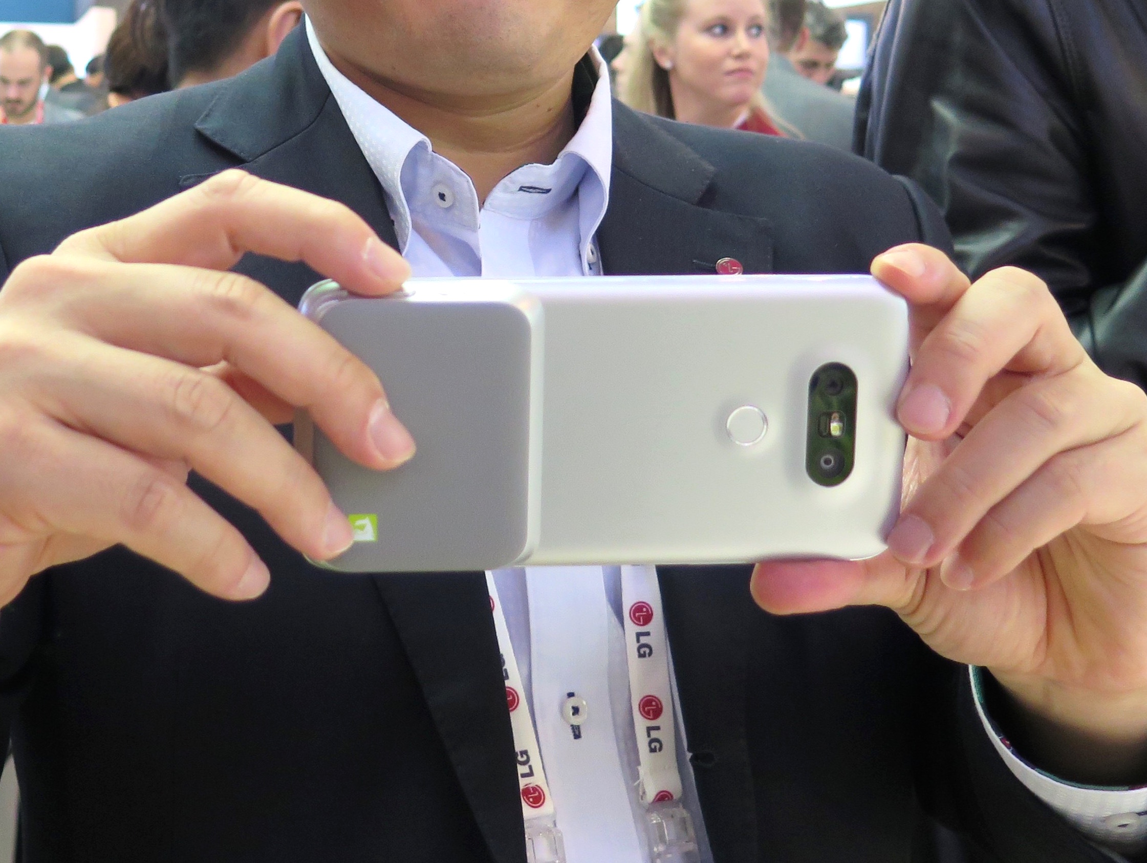 もうひとつが「LG CAM Plus」というモジュールです。シャッターボタンやズームダイヤルを搭載しているので、デジカメライクに撮影を楽しめます。