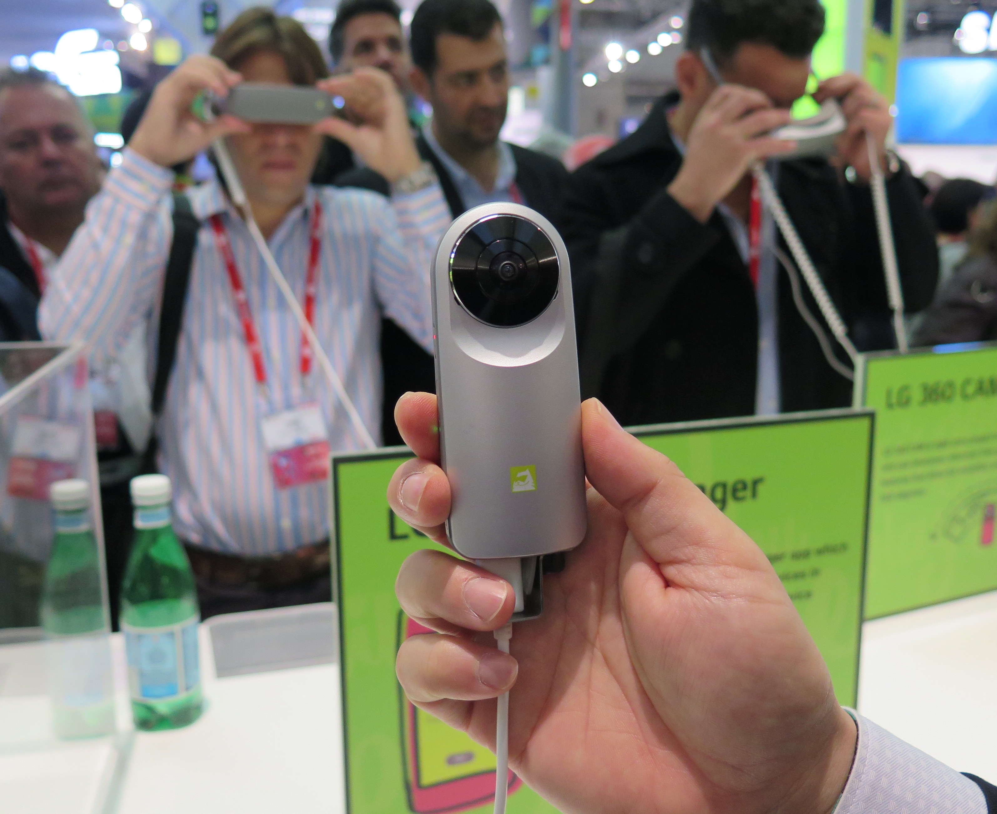さらに、LG G5の楽しさを広げる周辺機器も発表されました。まず、360°を撮影できる小型カメラ「LG 360 CAM」。G5の画面でライブビューを見ながら撮影でき、撮った画像はG5に自動で転送できる仕組みです。