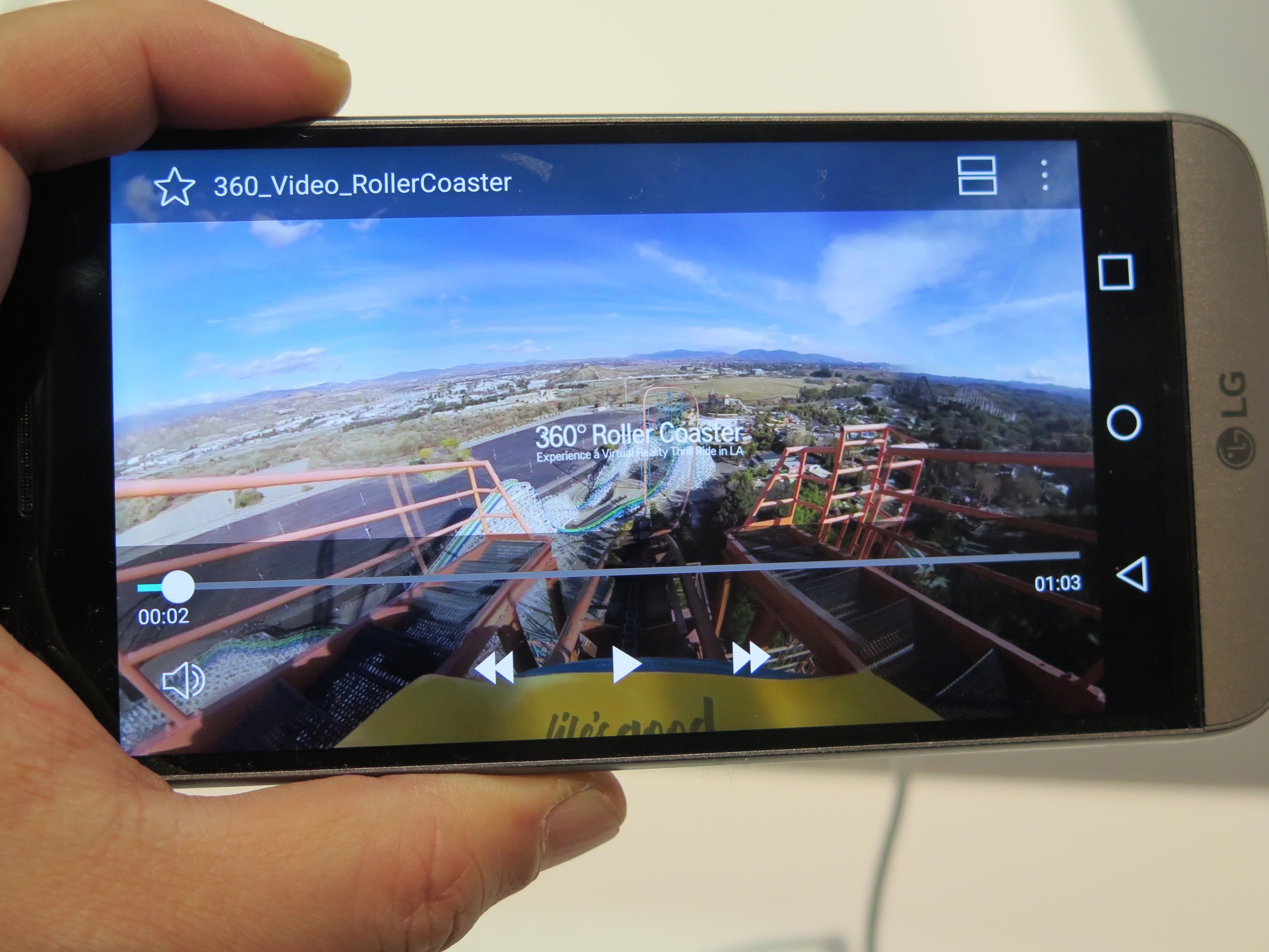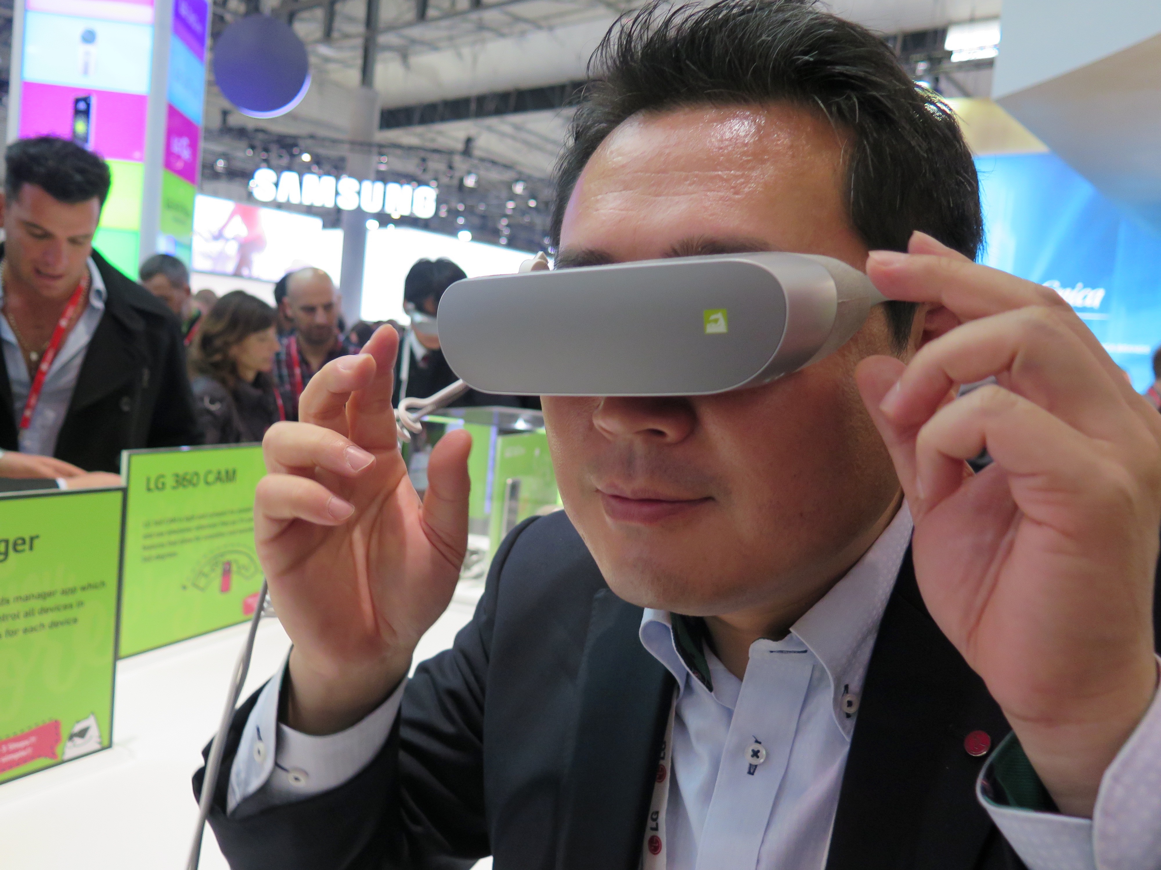 次に、VR映像を楽しめる「LG 360 VR」。スマホと組み合わせて使うVRゴーグルは、スマホ本体を取り付けて使うタイプが多いのですが、このLG 360 VRは、LG G5とケーブルで接続する仕組みで、耳に掛けられる眼鏡タイプ。118gと軽くて、長時間装着しても疲れないところがポイントです。