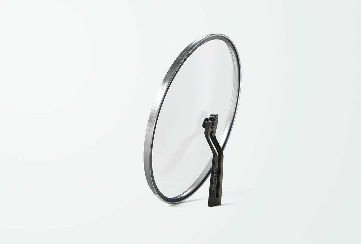 ハンバーグや餃子などの蒸し焼き料理に欠かせない専用リッド(フタ/別売り)は、26cm用が3700円、24cm用が3500円(いずれも税別)。熱くなりにくく、自立可能な鋳物ホーロー製の取っ手付きで、使いやすさもバツグンです。