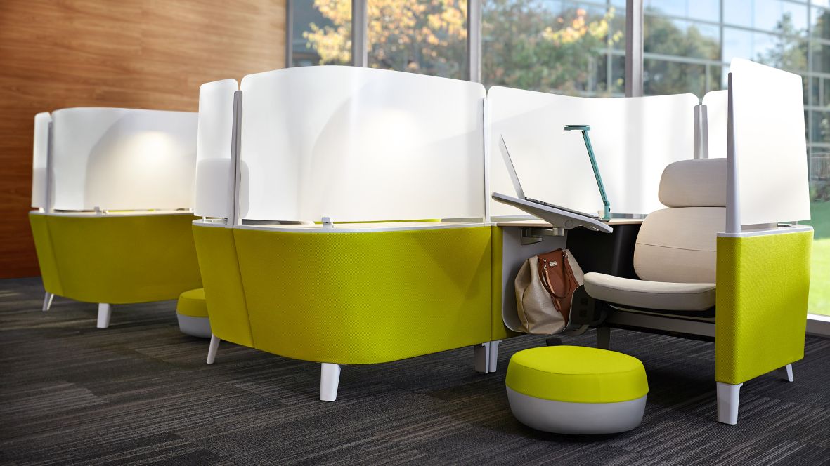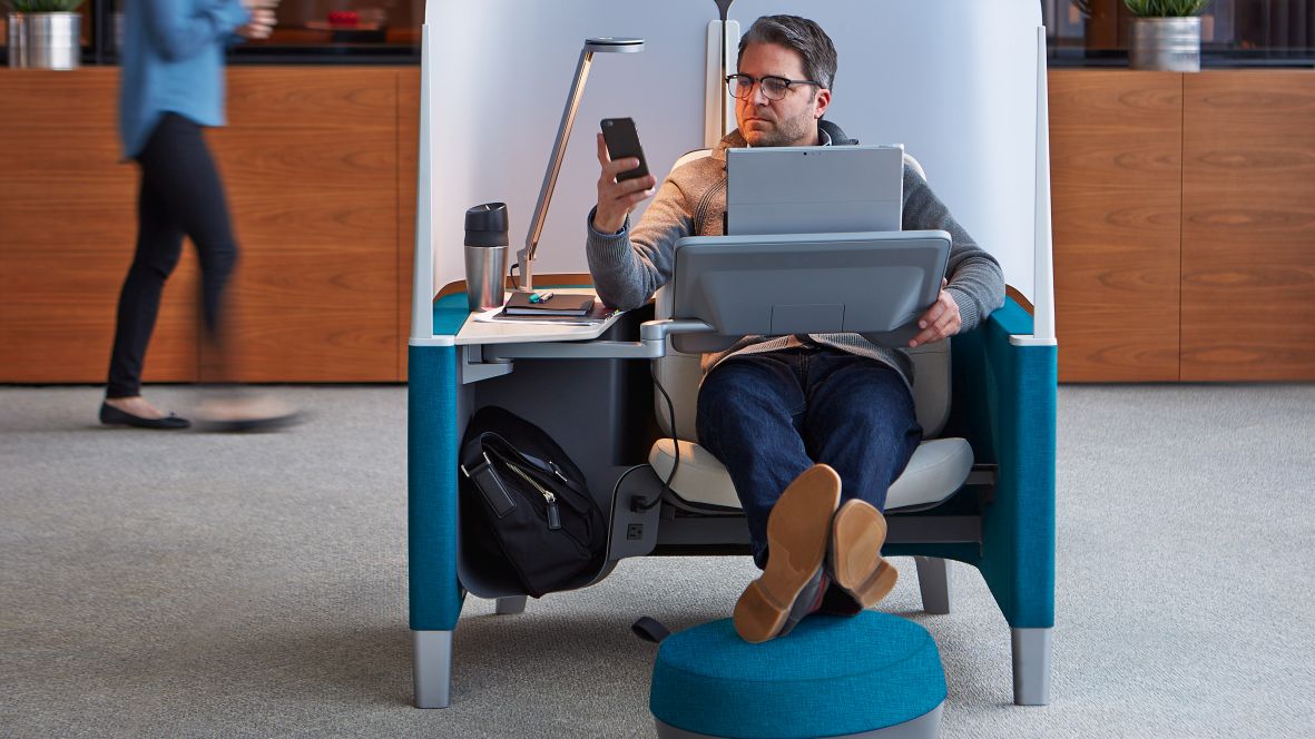 また、プライバシーを保つとともに視覚面での刺激を遮るスクリーンを配置、広めのサイドサーフェスはアームレストとして上腕や手首を支えるほか、サイドテーブルとしてマウス操作などに使うのにも便利。 オプションでLED照明や電源を装備することも可能だ。