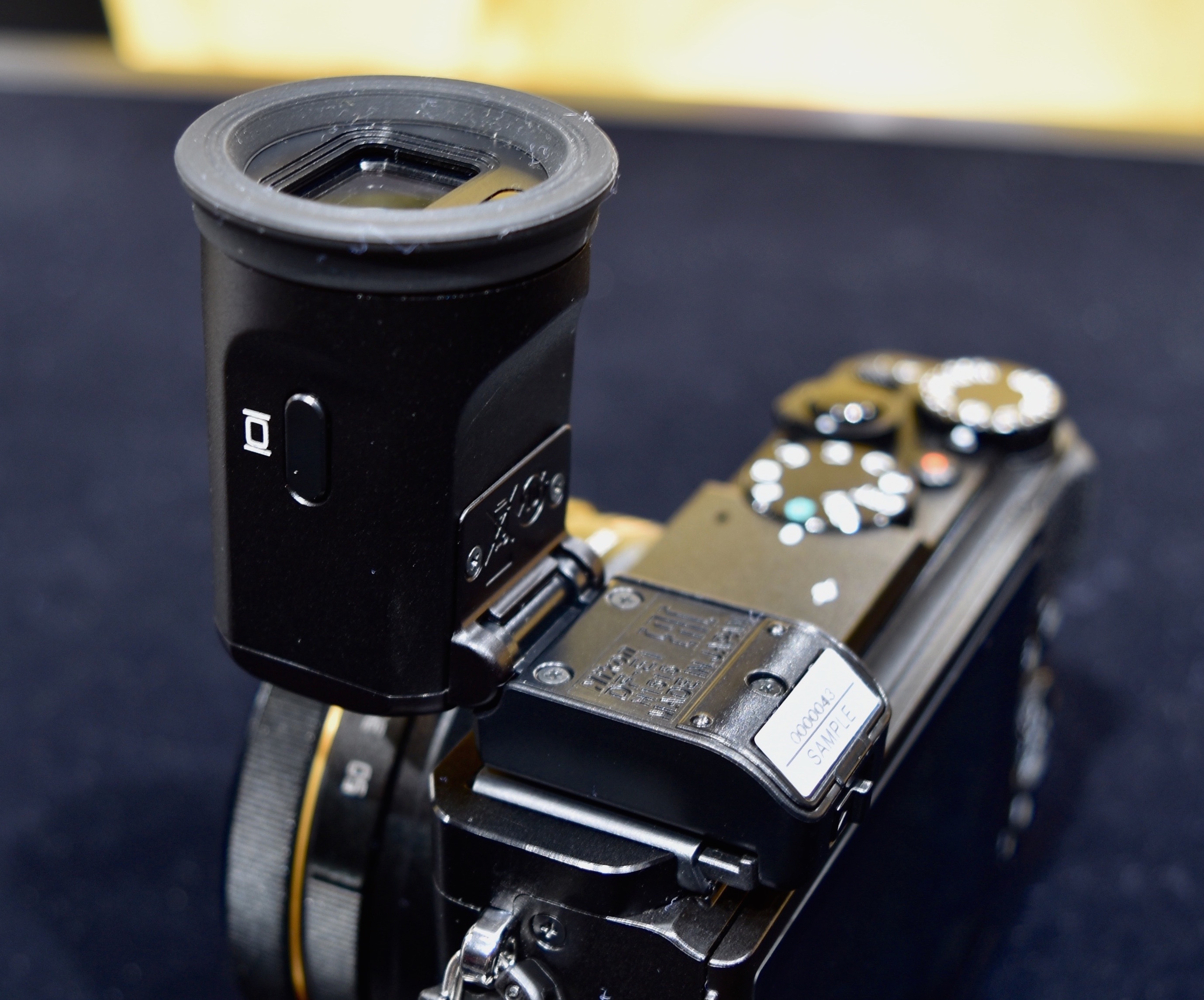 外付け電子ビューファインダーは中央にセット。左側には内臓フラッシュが配置されている