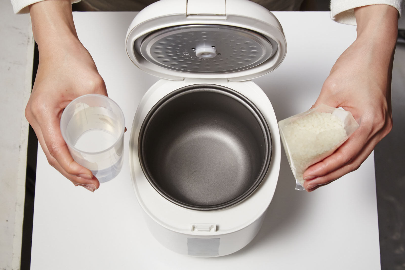 同時発売されている専用米のラインナップは「ソフトスチーム白米」「ソフトスチーム玄米」「ソフトスチームもち玄米」の3種類。「ソフトスチーム白米」を使って1.5合炊いてみました。