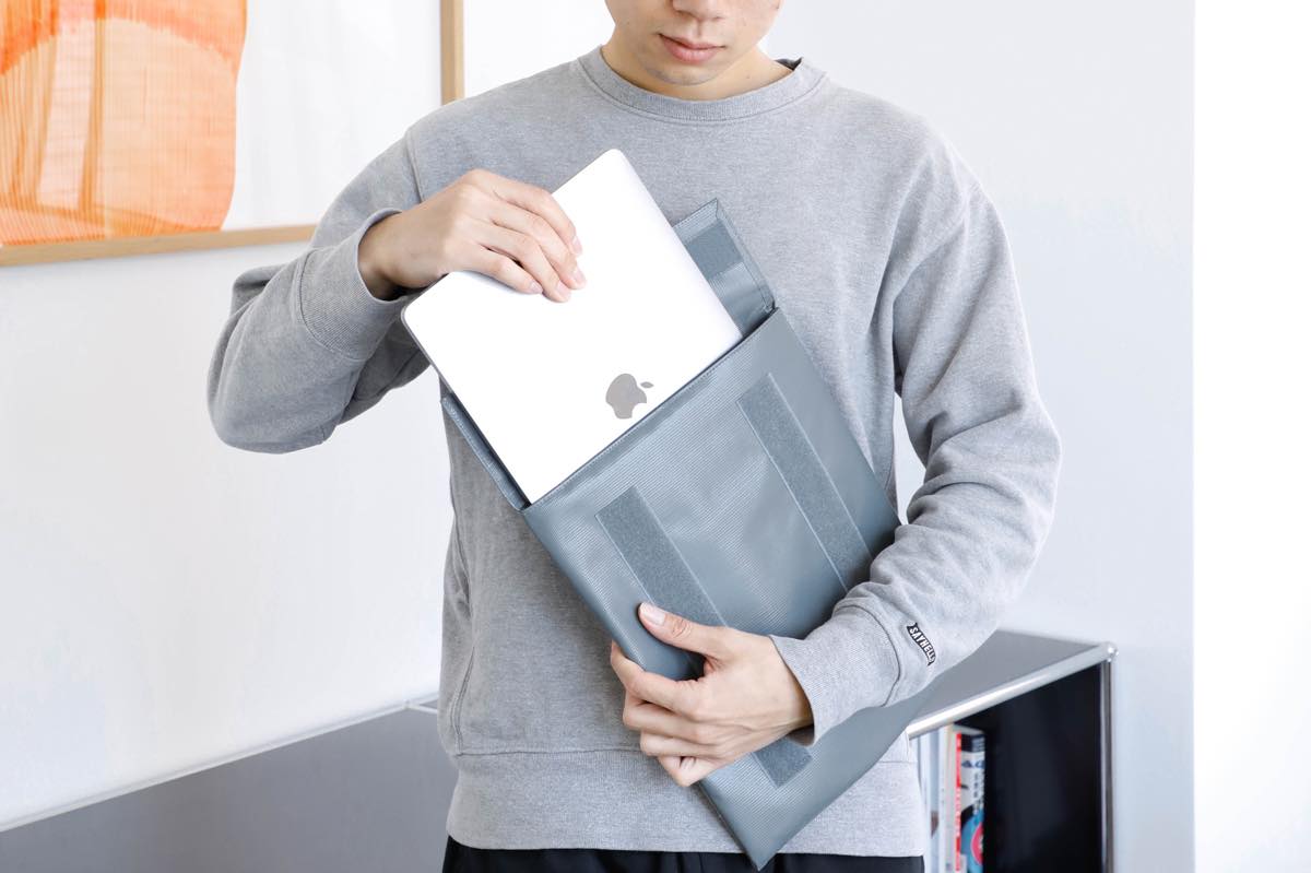 そこでオススメなのが、文具・雑貨メーカーのハイタイドから発売された「キャリータイトL」(2500円/税別)です。水や汚れに強い素材でできており、13インチのノートPC、タブレットまで収納できます。
