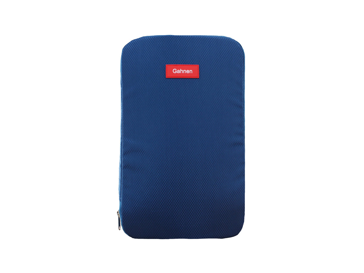 必要な衣類を入れたらあとは中央のファスナーを閉じるだけなのですが、ここで注目なのが上下の広い面に格納しているポリマー材。硬さのあるポリマー材は圧を加えても伸びたり膨らんだりしないため、中に入れた衣類を両面からしっかりプレス。これによりファスナーを閉めるだけでしっかり圧縮できるというわけです。