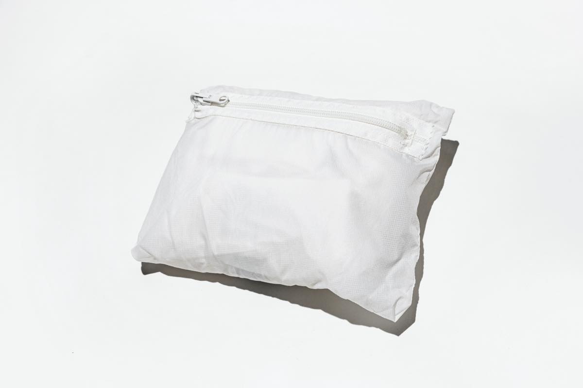 20デニールという薄さなので、折り畳んで背面に設けたポケットに収納することでコンパクトになるパッカブル仕様。肌寒くなったときにサッと羽織ったり、暑くなったときにパッと脱いで小さく畳めるなど、ウィンドブレーカーのように使えます。ナイロンリップ素材なので、この薄さでも擦れも破れも気にしなくていい点が、アウトドアシーンでもデイリーウエアでもガシガシ着ることができそうです。