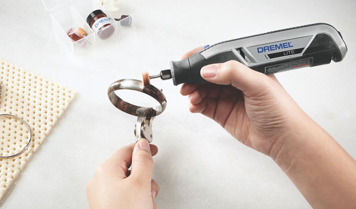「DREMEL LITE」は本体を軽量化したうえで、滑りにくいソフトラバーグリップなので、長時間でも疲れにくい工夫がしてあります。アクセサリーやアタッチメントを替えることで、さまざまな用途に使えます。