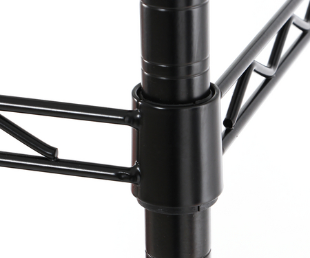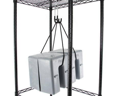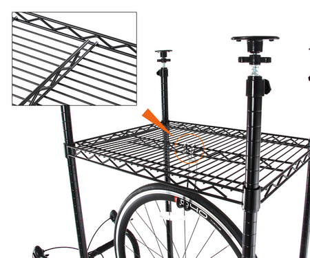 ポールは直径25mm、棚板には5.8mmのフレームを使用しています。自転車を吊り下げるフックは、1 本あたり70kgを吊り下げることができる直径7mmのスチール鋼2本を使用。フック先端には1mm厚のPVCコーティングがされており、ホイールを傷つける心配もありません。