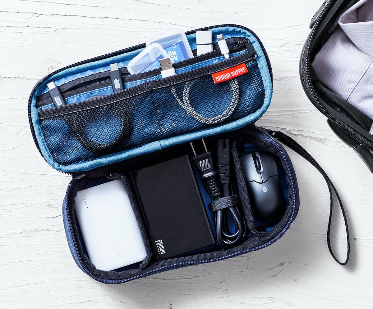 USBケーブルやSDカードなど、PC関連の小物類はデスク上や引き出し内でごちゃっとしがちですよね。こうならないためにも、ぜひ用意しておきたいのが収納ポーチ。小箱やハードケースよりもラフに扱うことができ、持ち運びの際も便利なんです。