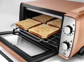 オーブン&トースターは8.5リットルのコンパクトサイズ。オーブン、グリル、保湿の3機能を備え、幅広い調理が可能だ。トースト4枚焼ける余裕のサイズ。1万9440円