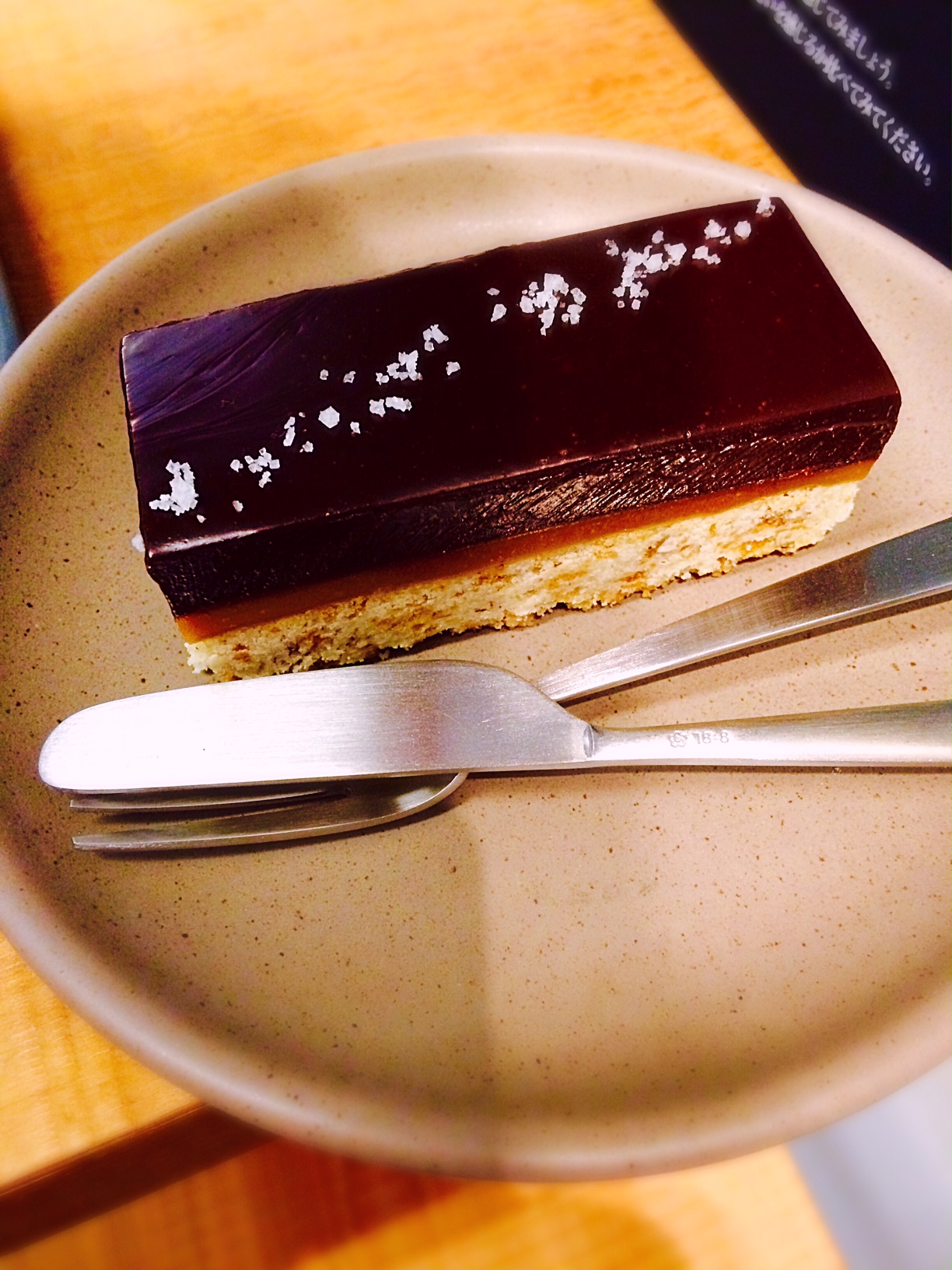 「ドゥルセ・デ・レチェ・バー」(450円)は、アーモンドとヘーゼルナッツのサブレクラストに“ドゥルセ・デ・レチェ(液体キャラメル)”をのせ、カミーノ・ヴェルデのチョコレートキャラメルガナッシュで仕上げた濃厚なバー。2階で公園眺めながらゆったり楽しみたいメニューのひとつ