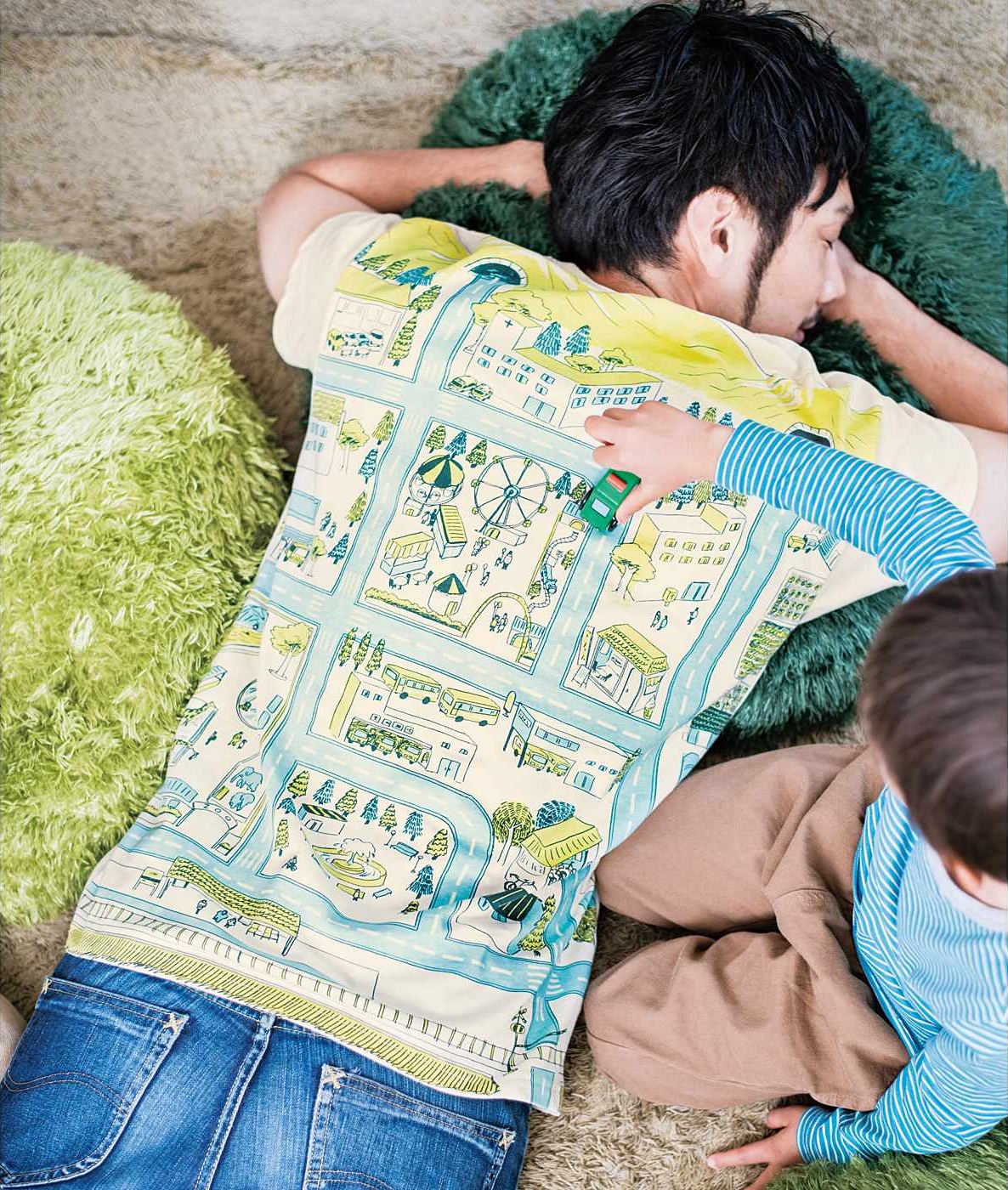 せっかくの週末くらいは子どもとゆっくり遊びたい、けれど日々の仕事の疲れが溜まって起き上がれない……。そんな、毎日頑張っているお父さんを救ってくれる、かもしれないアイテムを紹介しよう。それが、「寝ころび保育 パパドーロTシャツの会」だ。