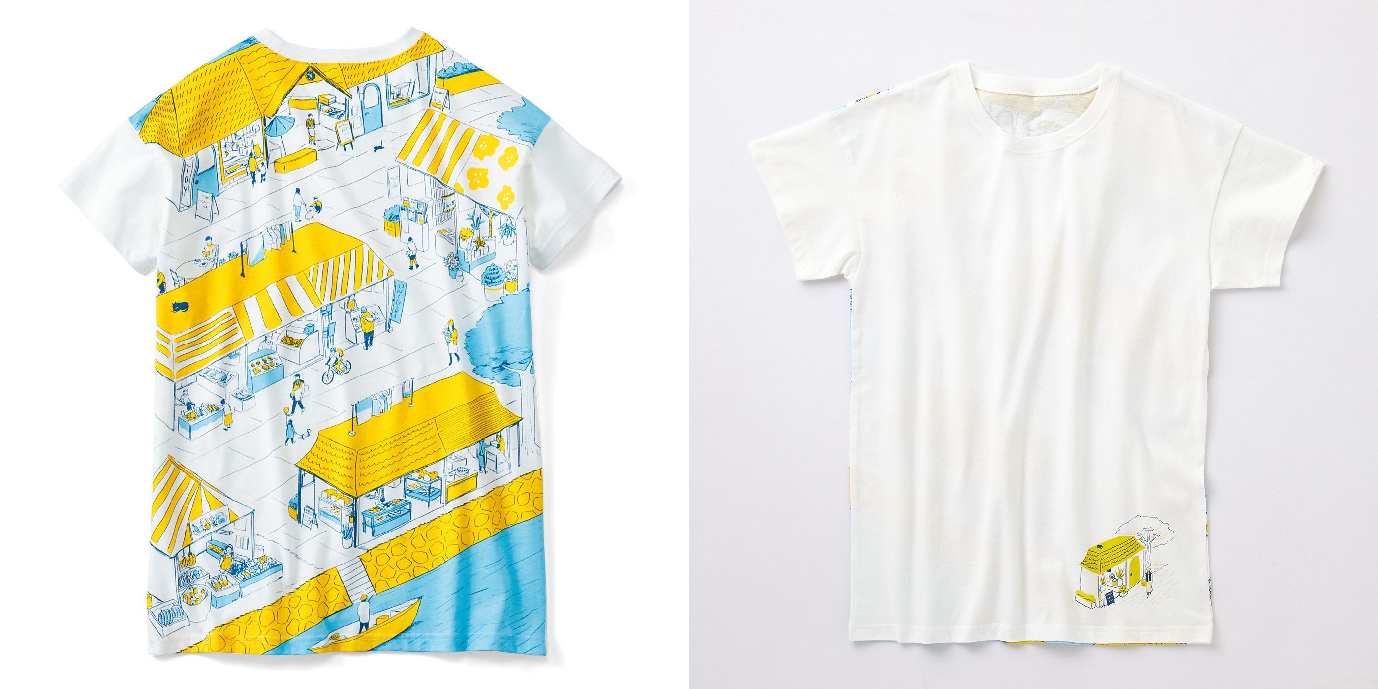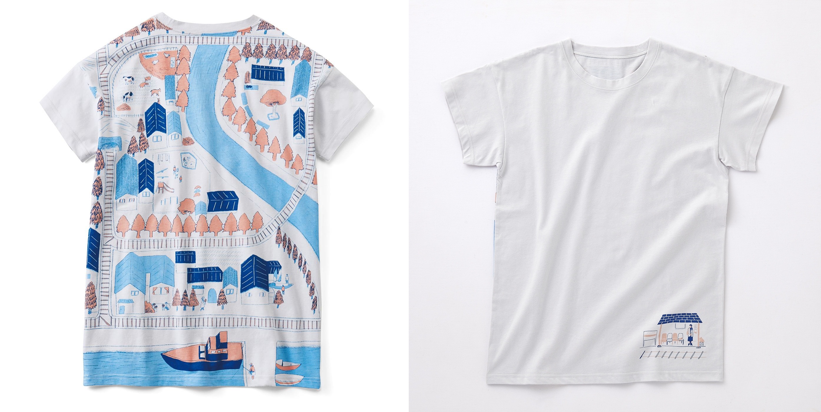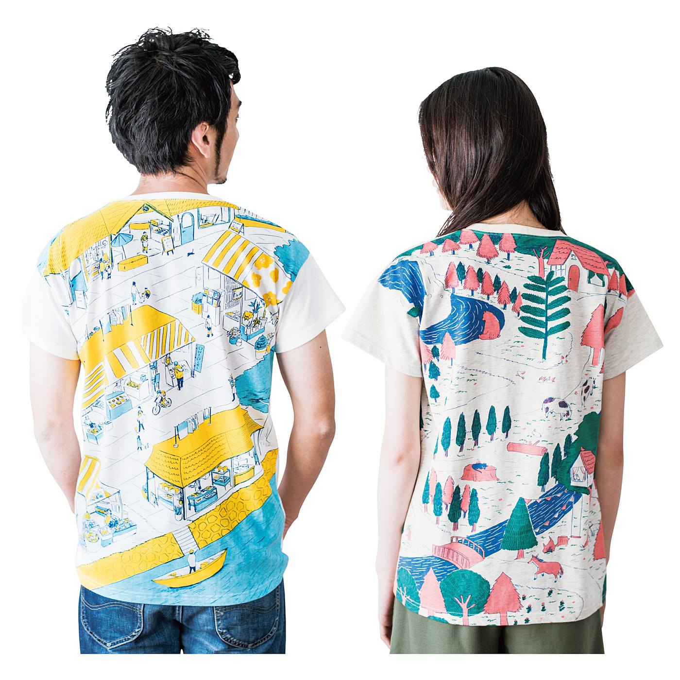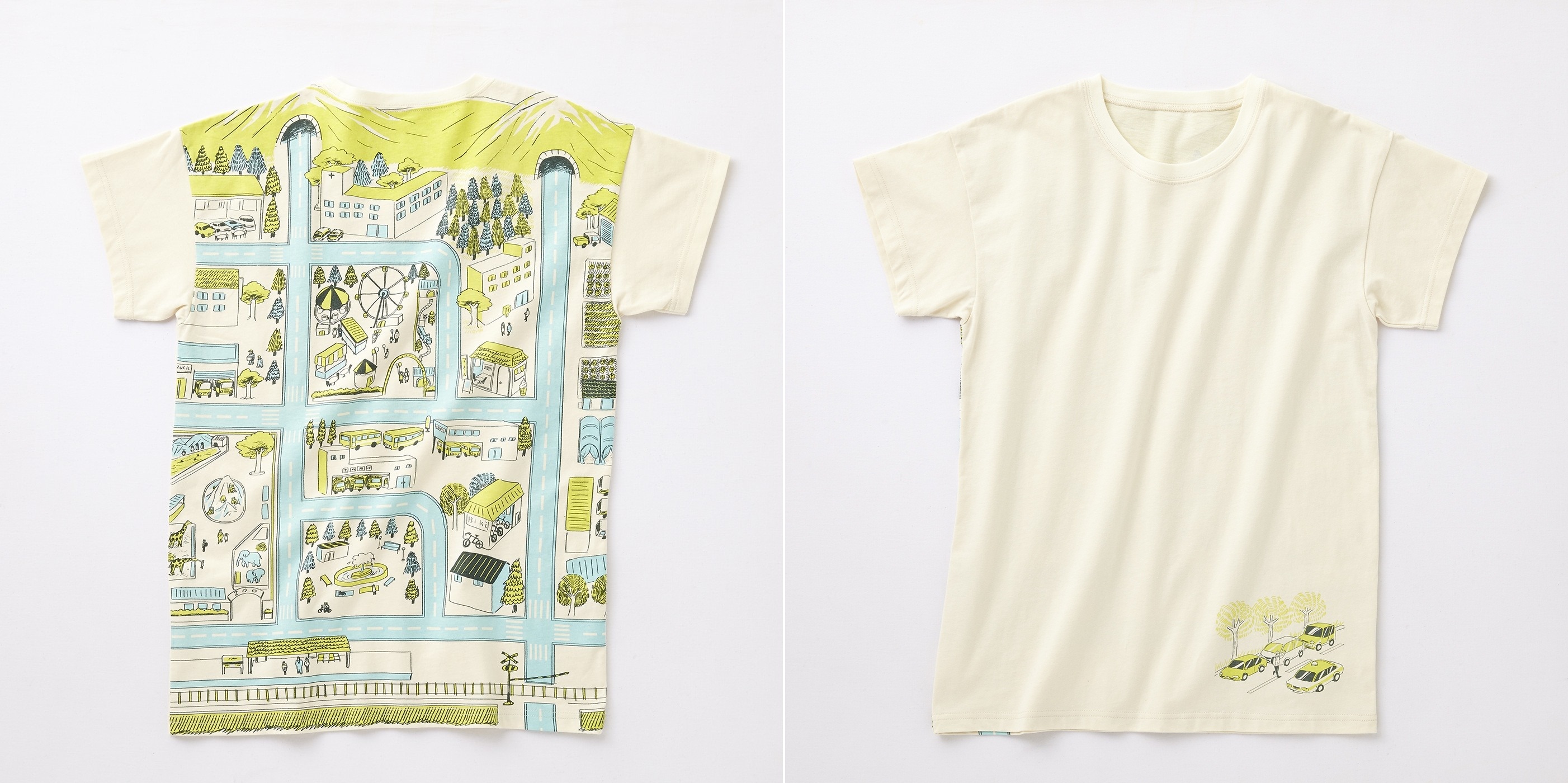 カタログ通販「フェリシモ」のユーモア雑貨ブランド『YOU+MORE! [ユーモア]』から登場したこのTシャツは、道路や線路のイラストが大きくバックプリントされたもの。