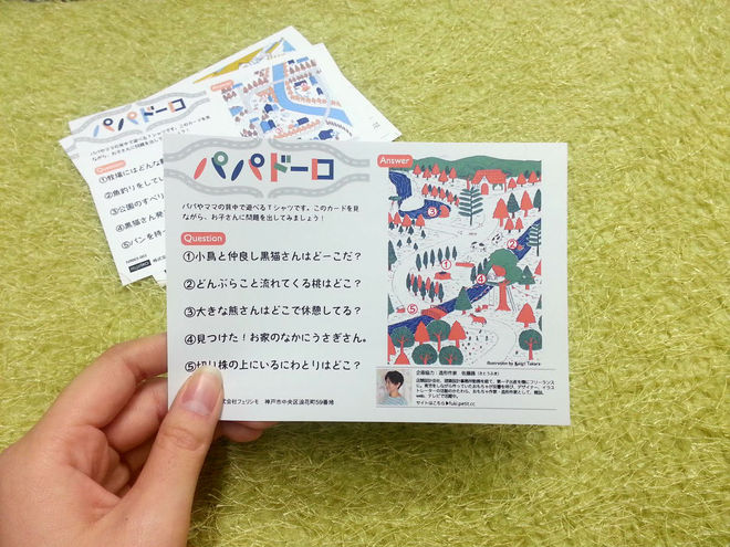 このシャツを着てうつぶせで寝れば、子どもたちがミニカーを走らせたり、人形を使ってままごとをするなど、自由な発想で遊んでくれるに違いない。さらに、同封されたカードを見ながら「○○はどこにある?」など、背中で遊ぶ子どもにクイズを出してコミュニケーションを図ることもできる。ゴロゴロしながら遊べて、大人も子どももWin-Winだ。