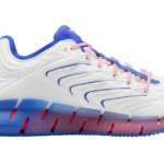 カラーラインナップはホワイト/ブルー、ベクターネイビー、アシッドイエローの3色。どれもコーディネートを華やかに演出する大胆なデザインです。