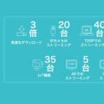 より効率のよい通信を実現するOFDMAとMU-MIMO技術によって150台以上もの端末が同時に接続できるから、常時接続するIoT家電を用いてのスマートホーム化、ホームセキュリティの構築などを想定している人なら特にオススメ。