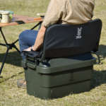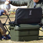 もうひとつのアイテムは「ヨクミルヤーツ」をソファ化する専用オプション「スワルヤーツ」(5500円)です。座面と背もたれのクッション部にPUコーティングの600Dポリエステル材を用い、さらに軽量のアルミフレームで「ヨクミルヤーツ」のフタ部に固定。金具とねじ止めによる設置となるため、ガタツキはもちろんのこと、シート本体が外れてしまう心配は皆無です。