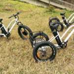 電動アシスト式三輪自転車「e trike」は、スポーツモデルとしてリリースされたもので、ハンドルに装備されたレバーを使うことで、ペダルを漕がずに走れる仕様となっています。
