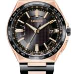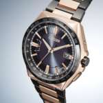 上品な艶を持った「ブラックチタン(チタニウム+デュラテクトDLC)」素材に合わせているのは、華やかさと優れた耐傷性を併せ持つ「デュラテクトピンク」。エッジの効いたフォルム、削ぎ落されたケースライン、はっきりと見やすいインデックス、ベゼル部分へのワールドタイムの都市表記配置などには「ACT Line」シリーズらしいアクティブさを残しますが、色・質感の異なる素材合わせの妙によってエレガントな1本に生まれ変わっています。