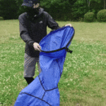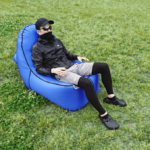 空気で膨らませると言っても、空気入れなどでフーフー膨らませる必要はありません。空気を入れるための大きな口を開け、「Airチェア」を持って大きく振り回して一気に空気を入れ、開口部を閉じてさらにクルクルと巻いていき、空気がパンパンになったところでバックルで閉じるだけ。あっという間に完成します。