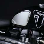 タンクには特大サイズのトライアンフバッジとブラッシュ仕上げのデカールフォイルニーパッド、 そしてゴールドの手描きコーチラインが入り、英国トラディショナルな雰囲気をまとっています。