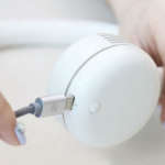 風量は、自然風、弱風、強風の三段階。ボタンを押すだけで切り替えが可能。同梱されているUSB Type Cケーブルを使えば、わずか2時間半でフル充電でき、1回の充電で自然風なら4時間半、弱風なら2.5時間、強風なら1.3時間、使用できます。