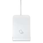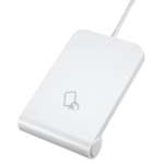 Windows/macOS両対応で、本体サイズは66×98mm、高さは18mm。白一色のシンプルなデザインで、カードが安定した状態で乗せられるように、手前側がやや高くなるよう角度をつけた設計になっています。