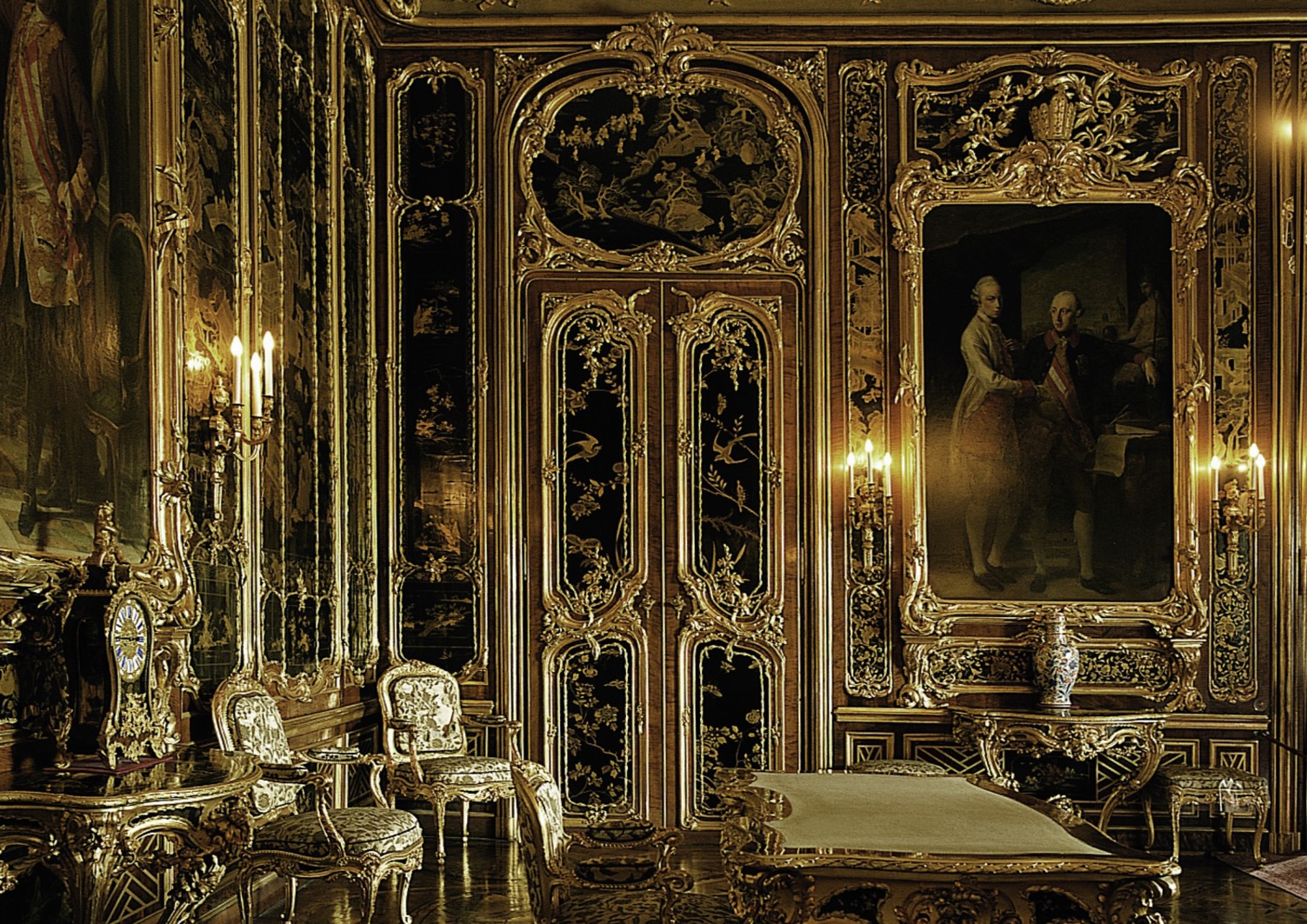 当時としては異例の恋愛結婚で結ばれたふたり。1765年に夫フランツ・シュテファンがこの世を去り、悲しみにくれたマリア・テレジアは二人が好んだ漆を贅沢にしつらえた「漆の間」をつくり、亡き夫を偲びました。