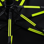 強さの秘密は、「ダブルファイバーグラスボンディング工法」という製法。一般的なアルミやステンレスの傘の骨に比べ、見るからに強靭にできています。