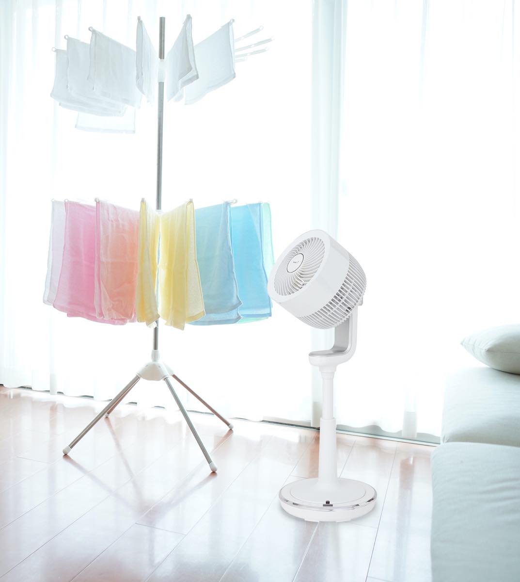 今年は、全国的に例年より少し早い梅雨入りになりそうですが、このシーズンの困りごとといえば洗濯物ですよね。部屋干しだと乾きにくく、イヤ~な“生乾き臭”が発生してしまいがちです。そんなときに活躍するのがサーキュレーター。しかもユアサプライムスの「スタンドタイプ消臭DC サーキュレーター」(1万4080円)なら、マイナスイオンを風と共に吹き付ける「消臭機能付き」で、除菌や脱臭しながら洗濯物を快適に乾かしてくれますよ。