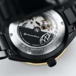 インデックスには、視認性を配慮して、暗闇でも力強い光を放つスイス製スーパールミノバを採用。シースルーバックの裏蓋からは日本製ムーブメントの確かな営みを覗かせます。